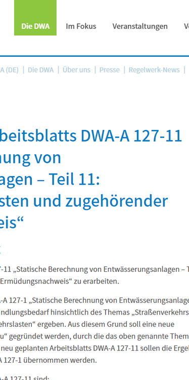 Ziele der Erarbeitung des Arbeitsblatt DWA-A 127-11 sind: