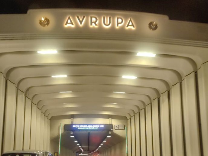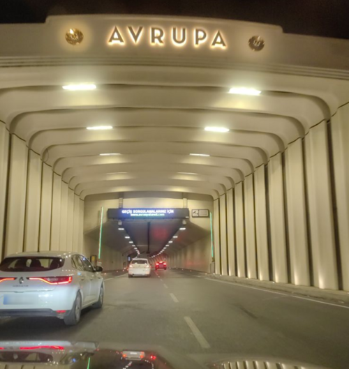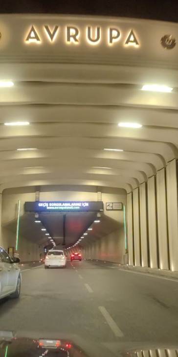Am letzten Abend nutzen wir die räumliche Nähe und fuhren mit dem Leihwagen durch den Eurasien-Tunnel auf den benachbarten Kontinent. Die Aufnahme zeigt das Tunnelportal von der asiatischen Seite aus, auf dem Rückweg, in Richtung Europa.