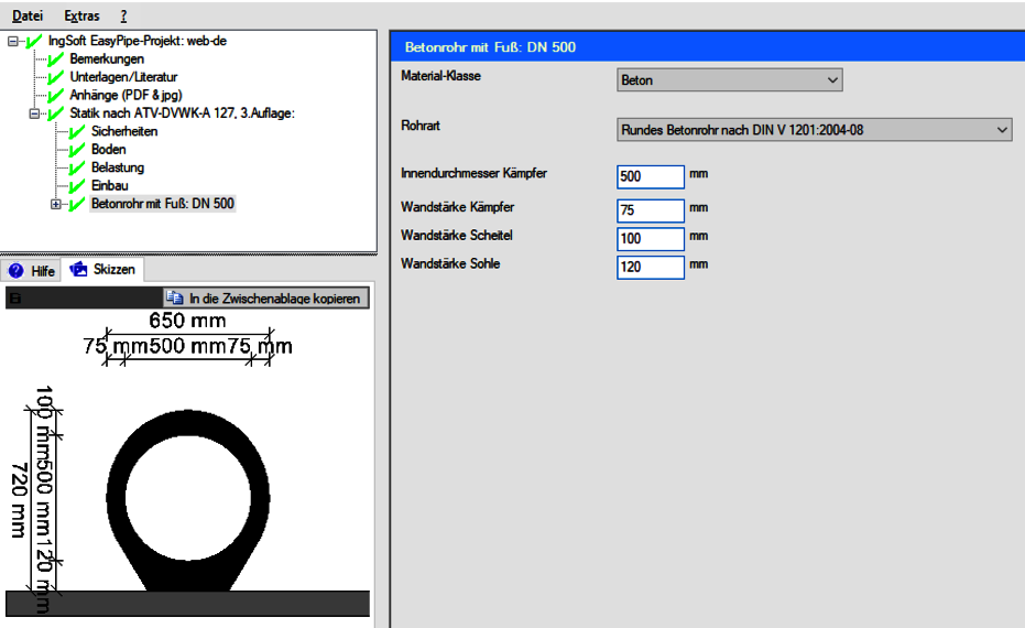 Mit dieser Erweiterung weisen Sie Stahlbetonrohre und Betonrohre, die einen Fuß besitzen, statisch nach.