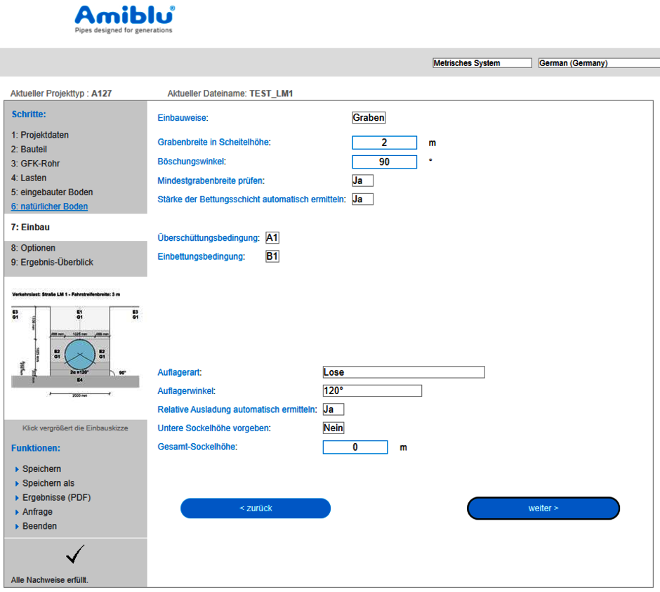 Website mit umfangreicher Funktionalität für Grabenverlegung nach ATV-DVWK-A 127, AWWA M 45 und Rohrvortrieb nach DWA-A 161. Rohrstatik-Rechner: