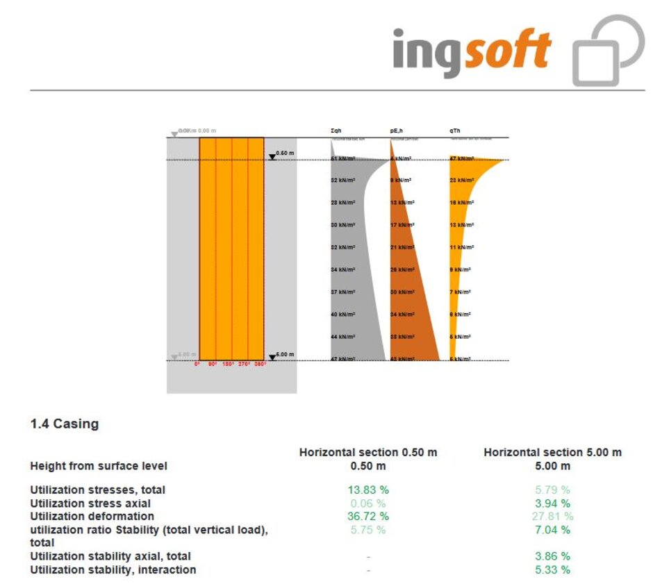Special features of the static calculation of buried shafts, such as the course of the earth pressure or the (horizontal) soil stresses, are clearly displayed.